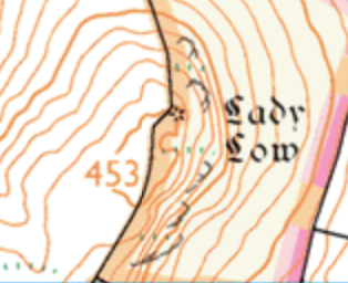 This round barrow is 20 metres diameter and 2 metres high. It showed similar signs of disturbance to Cow Low, although there are no surviving known documents of excavation.